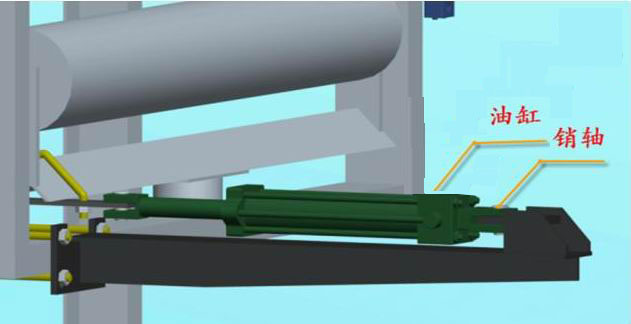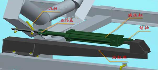 ③ 把液壓缸的兩個耳環孔分別按照如圖所示的位置用銷軸裝在活塞桿卡子和油缸座上。
